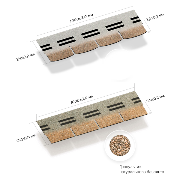 Материал как и сама плитка снаружи покрыт посыпкой из натурального базальтового гранулята. Основа стальной лист толщиной 0,45 мм, покрытый с обеих сторон алюмоцинковым сплавом, который предотвращает коррозию, даже в местах среза при монтаже и царапин на слое.